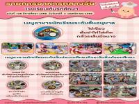 อาหารกลางวันนักเรียน เดือน พฤษภาคม พ.ศ. ๒๕๖๘ ระดับชั้นอนุบาล เช่น ไข่เจียว ต้มยำไก่ใส่เห็ด มะม่วง